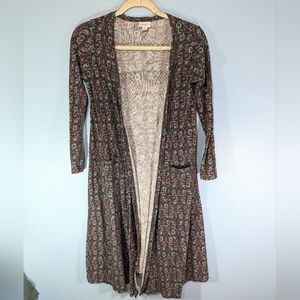 Super cute long ribbed open cardigan in a gray floral pattern by LuLaRoe.