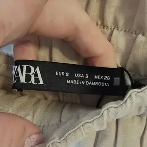 Zara Khaki Satin Cropped Trousers Women's Size Small NWT