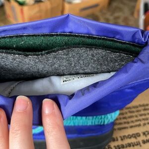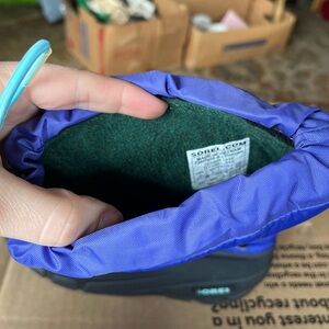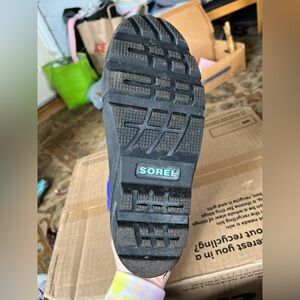 Sorel boots in vibrant violet and black. Sturdy construction with secure straps. Worn once.