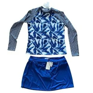 Cabana Life NWT Blue Palms Rashguard and swim skirt set Size XL