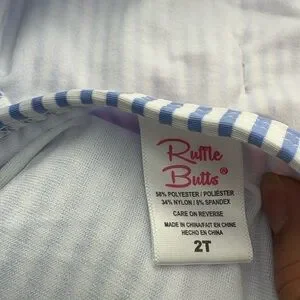 NWT Ruffle Butts Seersucker two piece with bow and skirted bikini size 2t