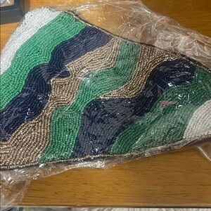 You are bold and beautiful this scarf necklace will add a splash of color to your ensemble with this vibrant beaded necklace and earring set. Featuring a stunning mix of green, blue, gold, and white beads, this set is perfect for any occasion. Express yourself without apology.