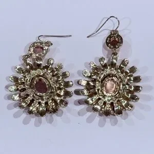 These stunning earrings feature a vibrant orange centerpiece surrounded by elegant gold accents. Perfect for adding a pop of color to any outfit.