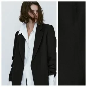 NWT. Massimo Dutti Black 100% Wool Micro-Textured Open Blazer. Size 2, 4.