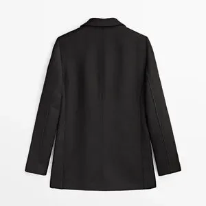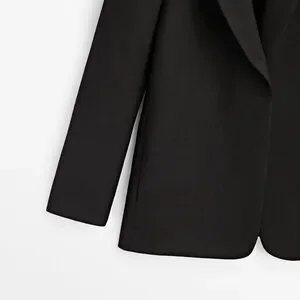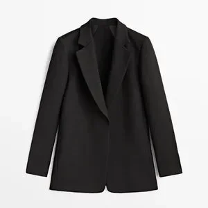 NWT. Massimo Dutti Black 100% Wool Micro-Textured Open Blazer. Notched lapel collar. No fastening. Lined. Size 2, 4. Ref. 6004/585. Size 2 - Pit to pit 18" flat, shoulders 13,5", sleeves 24,5", length 29". Size 4 - Pit to pit 19" flat, shoulders 14", sleeves 24,5", length 29".