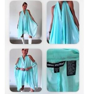 Like new. Vintage Unique Spectrum Blue Flowy Boho Outfit topper sheer lace Chic turquoise piece. Ideal for warm weather.size 1x. Approx measurements across chest 33 ptp length 38