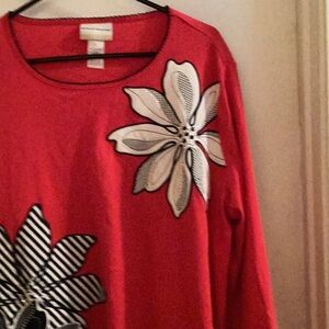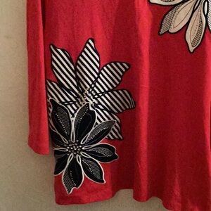 Alfred Dunner Vibrant Red Flower Top Size 1X