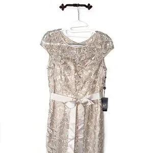 Adrianna Papell Lace Cap Sleeve Illusion Gown