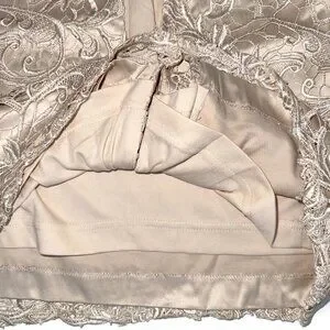 Hidden back zipper with hook-and-eye closure; back keyhole hook-and-eye closure