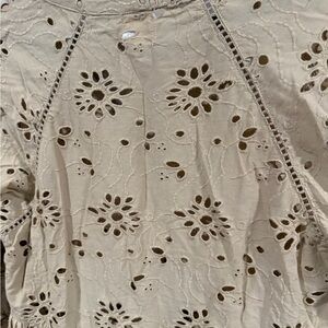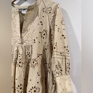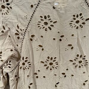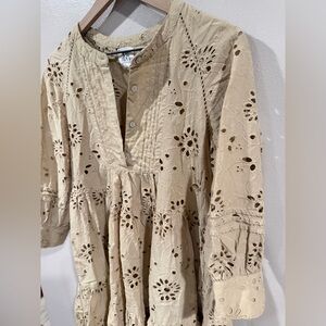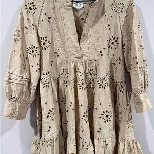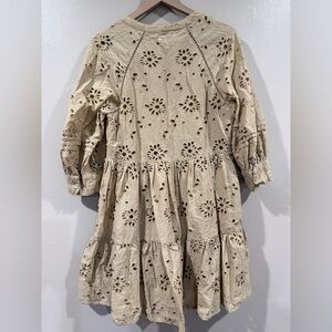 DRA Los Angeles Beige Eyelet V-Neck Dress size Medium (tag says large)