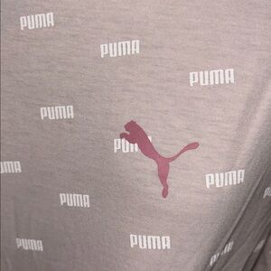 This is a soft Puma logo t-shirt and is in excellent condition! There is Puma written throughout and an upper Puma. The material tag has been removed, but it is a stretchy t-shirt material. Armpit to armpit is 26 inches and length is 27 inches.