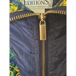 Vintage Basic Editions Windbreaker Jacket Women's M Medallion Print Gold Blue Green