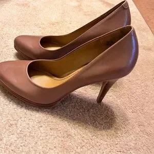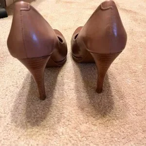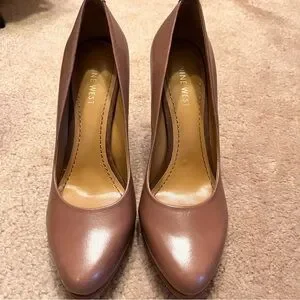 Leather upper Almond toe ½" platform, 4" stacked wooden heel Gently used condition