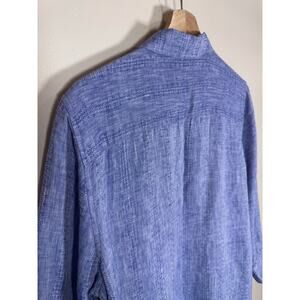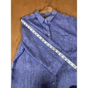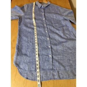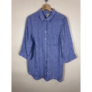 Chicos Blue Button Down Shirt 100% Linen 3/4 Sleeve NO IRON Tunic 12/14