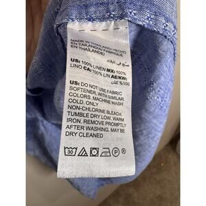 This Chicos Blue Button Down Shirt is a lightweight 100% linen tunic with a collared neckline and button closure. Perfect for casual occasions, the shirt features a solid blue color and 3/4 sleeves, making it suitable for summer, fall, and spring seasons. With a regular fit and machine washable design, this button-up shirt from Chico's is a versatile piece that can be styled for various occasions such as the beach, nautical trips, or a casual day in the office. It exudes a minimalist and classic look, ideal for those who appreciate quiet luxury and timeless style.