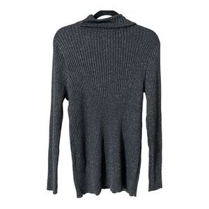 Chico’s Women’s Graphite Gray Metallic Lurex Ribbed Coolmax Turtleneck Sweater. Size 3 (Large)