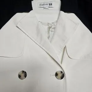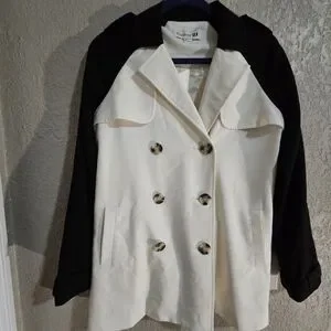 Forever 21 Womens Colorblock Trench Coat Cream Black Double Breasted Small
