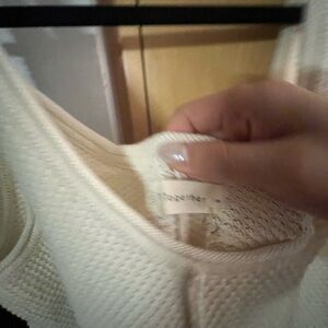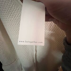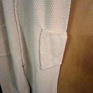 Chic cream jumpsuit with textured fabric. Features practical pockets. Ideal for versatile styling.