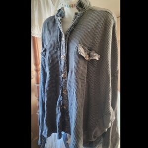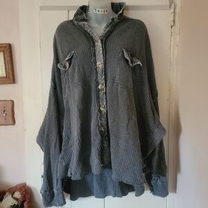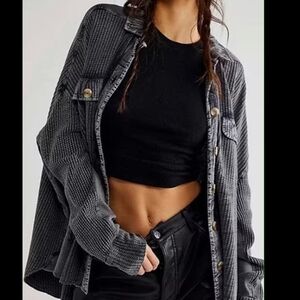 Free People FP ONE Scout Thermal Top Shirt Jacket Shacket CHARCOAL sz XL