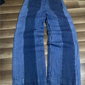 INC DENIM Women's Patchwork Wide-Leg Jeans Blue Medium Wash Pockets size 8/29