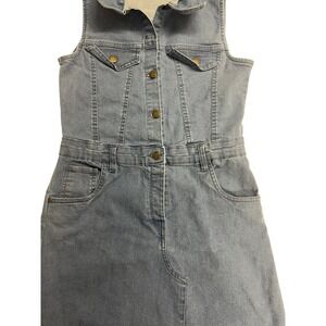 Vintage Bebe Sleeveless Denim Midi Dress Size L Stretch Y2K Western Utility