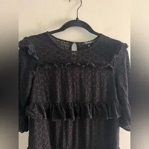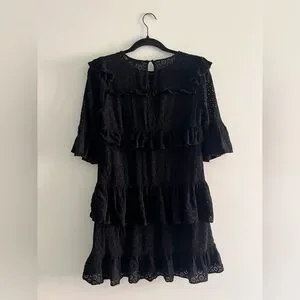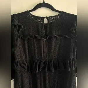 Madewell black eyelet lace dress with a gorgeous tiered ruffle design 🤍