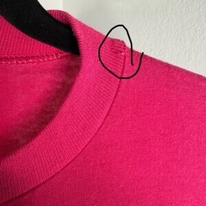visible fabric wear and pilling consistent with age, some missing stitching on neckline