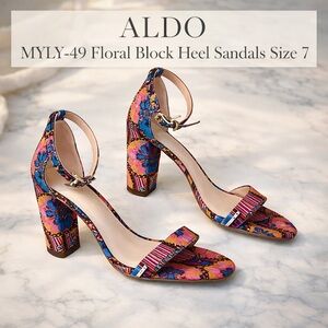 ALDO MYLY-49 Multicolor Floral Block Heel Sandals Size 7