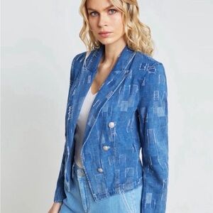 L'AGENCE Wayne Patchwork Denim Crop Blazer, Size L Excellent Condition