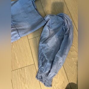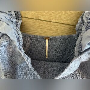 Free people smocked blue maxi eyelet dress blue size small