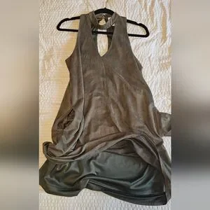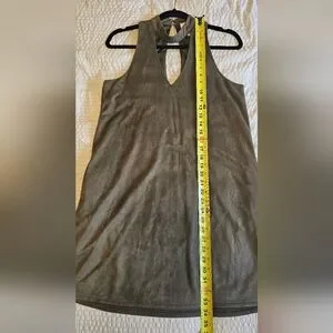 Discover elegance with this olive green faux suede sleeveless dress. Perfect for any occasion, its chic design offers both comfort and style.