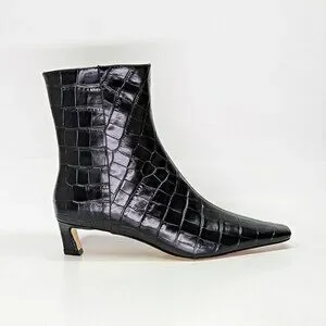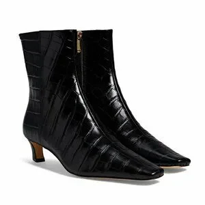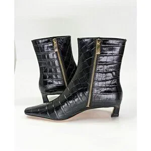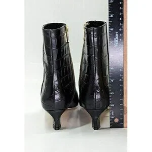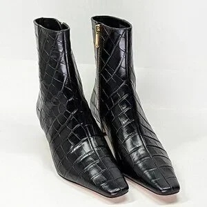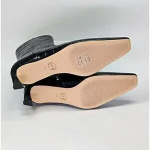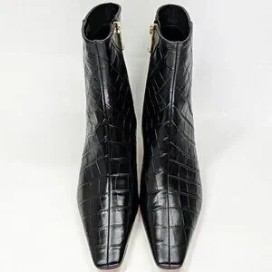 Elegant black croc-embossed heeled boots. Sleek design with side zipper. Perfect for stylish outings. Worn once!
