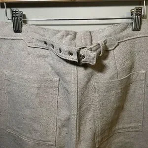 The pants are designed to have an oversized fit in the waist for flexibility and comfort. The buckle at the back of the waist can be adjusted to fit comfortably as our bodies fluctuate throughout the day. True high waisted.