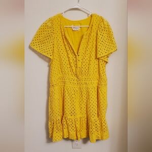 Anthropologie Somerset Canary Yellow Eyelet Mini Dress Size 2X Spring Easter