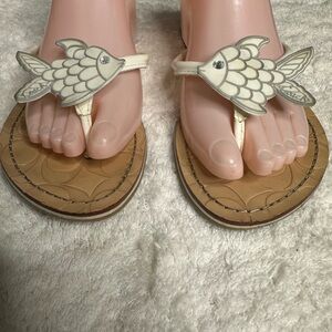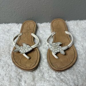 RARE Coach Nautical White Leather Fish Thong Sandal Y2K Monogram Flip Flops 8.5W