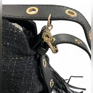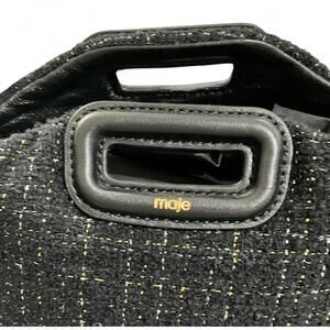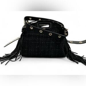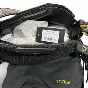 NWT MAJE Black Gold Metallic Tweed Crossbody Shoulder Bag Purse Leather Tassel