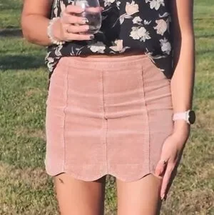 Stylish pink corduroy skirt perfect for any occasion. Add a touch of elegance to your wardrobe.