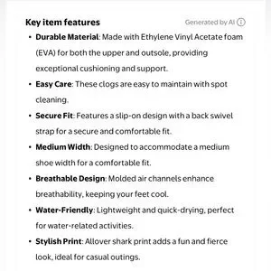 Perfect for the ultimate shark enthusiast, these clogs feature a vibrant, all-over shark species print officially licensed by Discovery’s Shark Week. Whether you're heading to the beach, a backyard BBQ, or just lounging at home, these lightweight EVA foam clogs offer incredible comfort and durability.