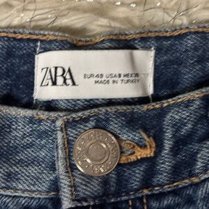 Zara Blue Medium Wash Wide Leg Raw Hem Jeans Size 8
