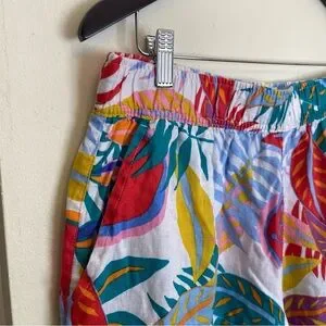 C & C California Colorful Tropical Leaf Wide Leg Linen Pants Womens XL Pockets