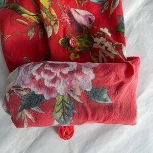 Johnny Was Sheer Button Front Red Multi Color Roll Sleeve Tunic Size L