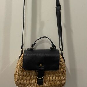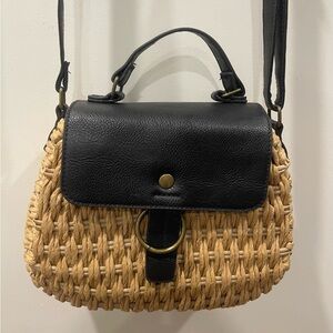 Matisse Beach Harbor Elegant Black and Tan Woven Crossbody Bag