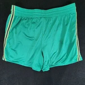 Bundle of two pairs of athletic shorts in vibrant green and maroon colors.