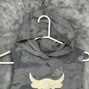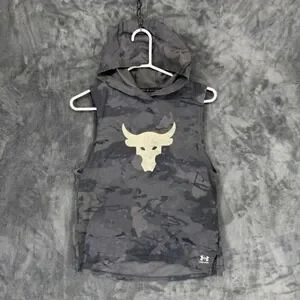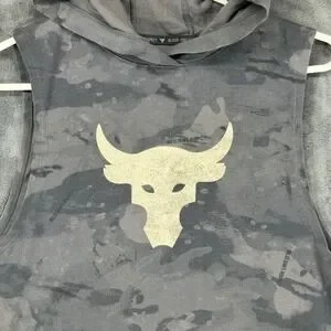 Under Armour Project Rock Womens Small Gray Camo Brahma Bull Sleeveless Hoodie
