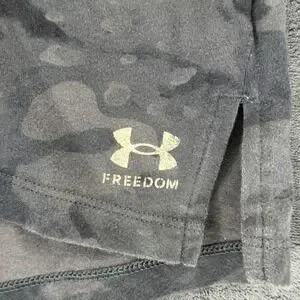 Project Rock sleeveless hoodie features a bold Brahma Bull graphic on the chest and an all-over tonal camouflage pattern. Part of the Under Armour Freedom collection, this athletic top includes a fixed hood and side-slit hem for enhanced mobility during training. The lightweight fabric is designed with a loose fit and incorporates the "Blood. Sweat. Respect." mantra along the inner neckline and subtly throughout the camo print.