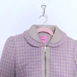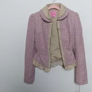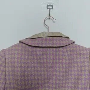 Phoebe x Kay Unger Purple and Tan Houndstooth Ruffle Trim Zip Up Blazer Size 2