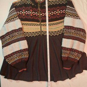 Women's Small Free People Cozy Cottage Half Zip Balloon Sleeve Boho Pullover