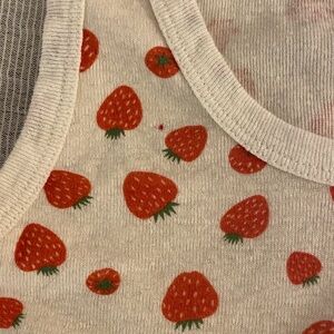 Fun tank top with red strawberry design. Fits more like an XS … tiny red dot of overprint from 🍓 design as shown in photo - no other signs of wear. Washed twice.