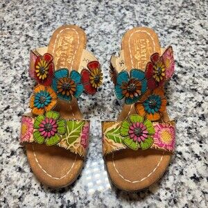 L’Artiste Spring Step Floral Leather Sandals Sz38 Boho Colored Slides