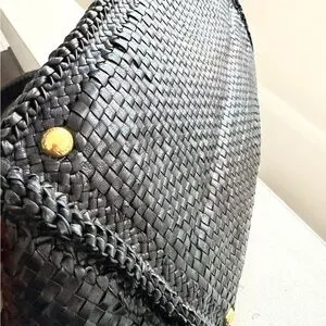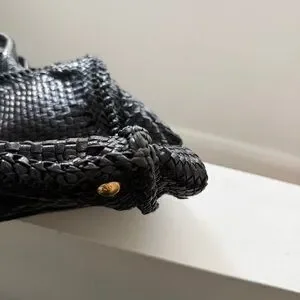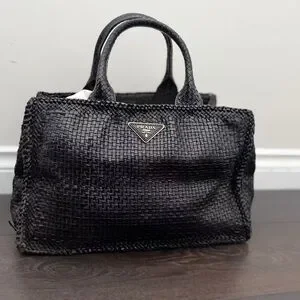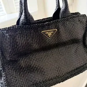 Prada Black Leather Woven Tote Bag